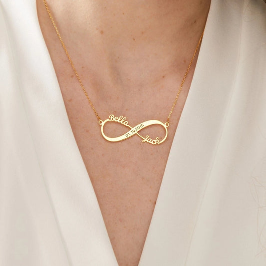 Custom Infinity Date Name Necklace Women Jewelry Stainless Steel Gold Color Engraved Nameplate Eternal Love Pendant Necklace