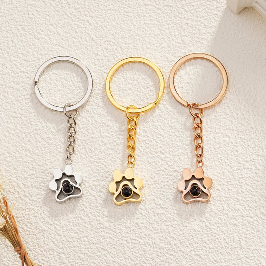 Custom Stainless Steel Photo Keychain Personalized dog Claw Projection keychain Custom Cat Dog Pet Photo Keyring Memory Jewelry