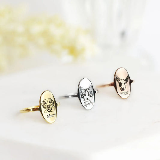 Custom Pet Portrait Ring Personalized Engraved Animal Picture Minimalist Finger Rings Memorial Gifts For Pet Lovers MemorialGift