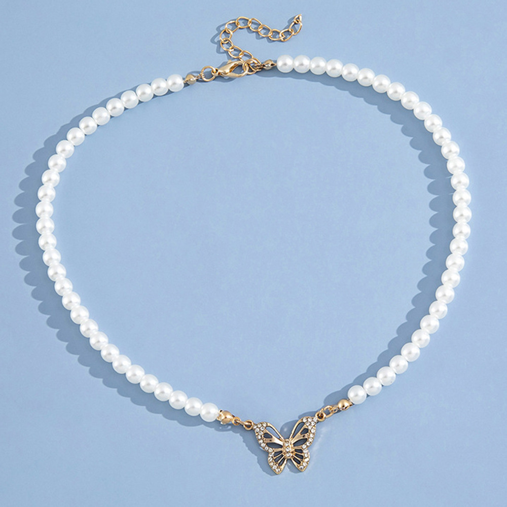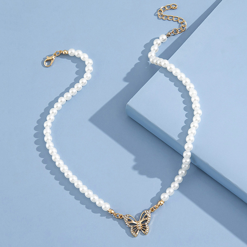 Diamond-set butterfly pendant abs pearl necklace for women