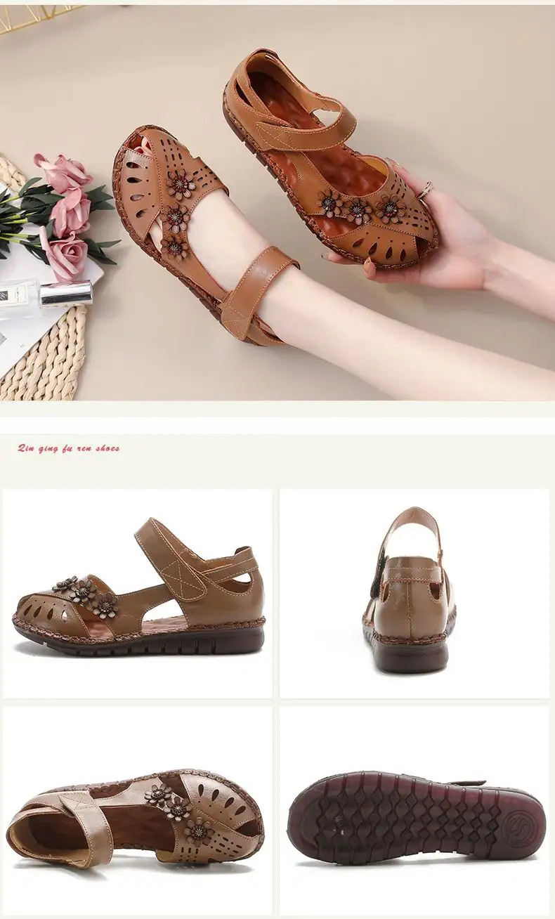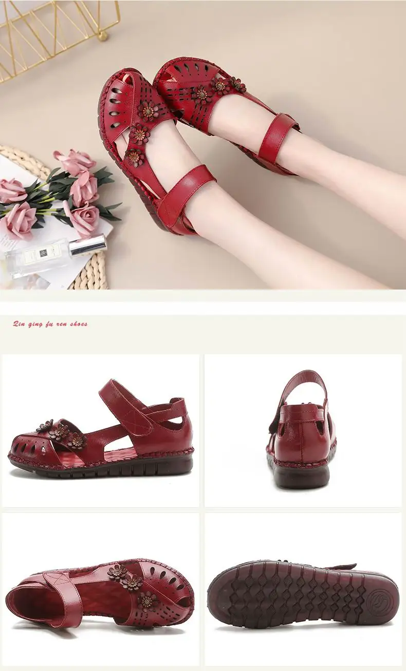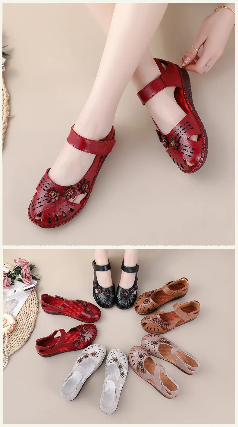 Summer New Handmade Women's Shoes National Style Genuine Leather Hollow Women's Sandals soft Flat with Sandals