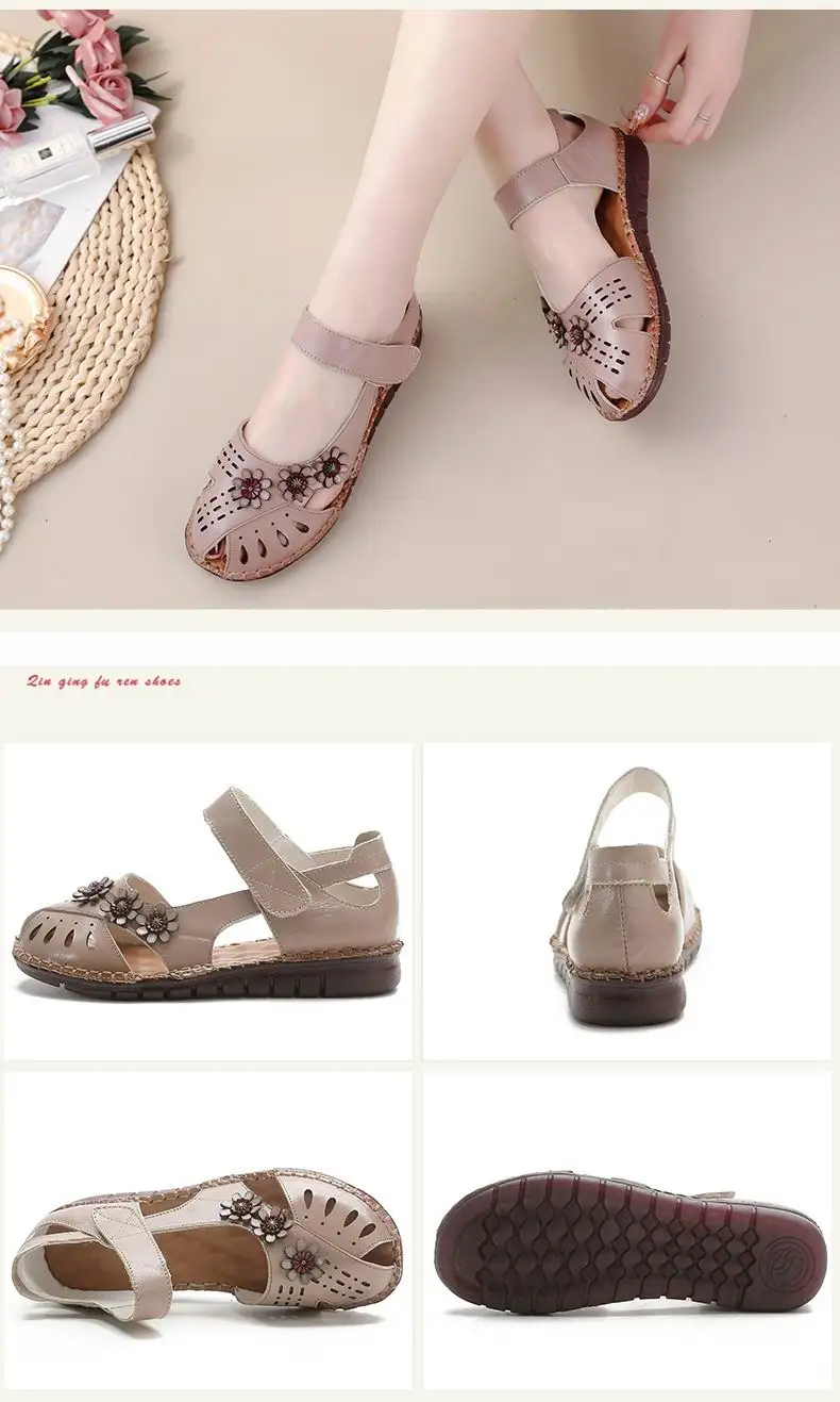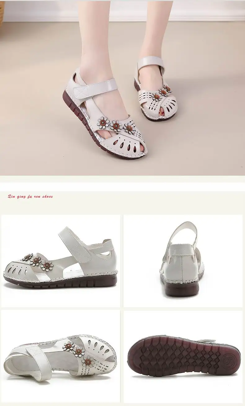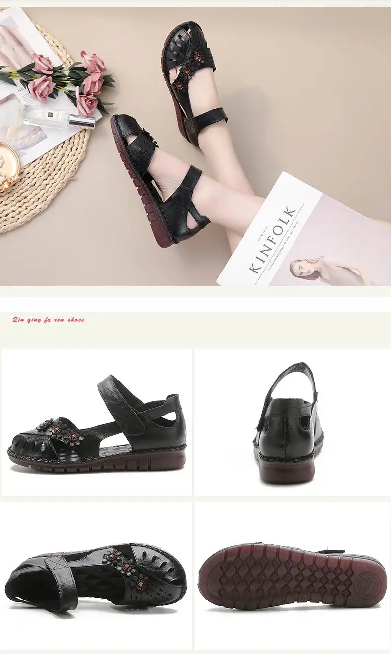 Summer New Handmade Women's Shoes National Style Genuine Leather Hollow Women's Sandals soft Flat with Sandals