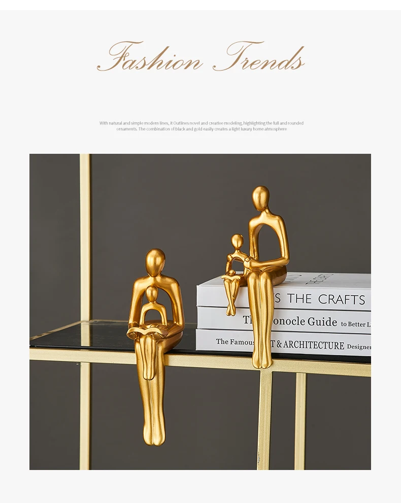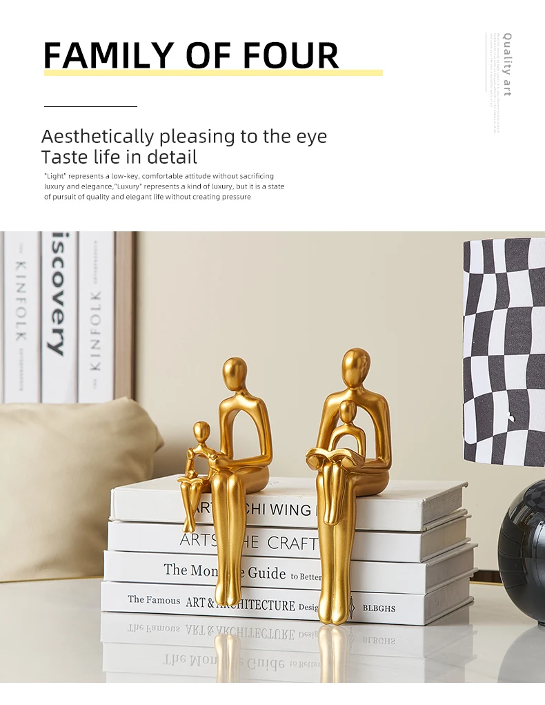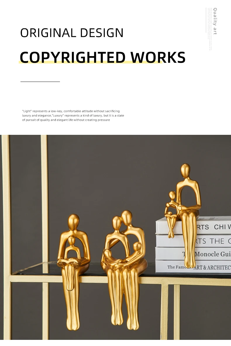 Golden Family Sculpture & Figurines Abstract Resin Statue Modern Home Decor Nordic Living Room Ornaments Desk Accessories Gift