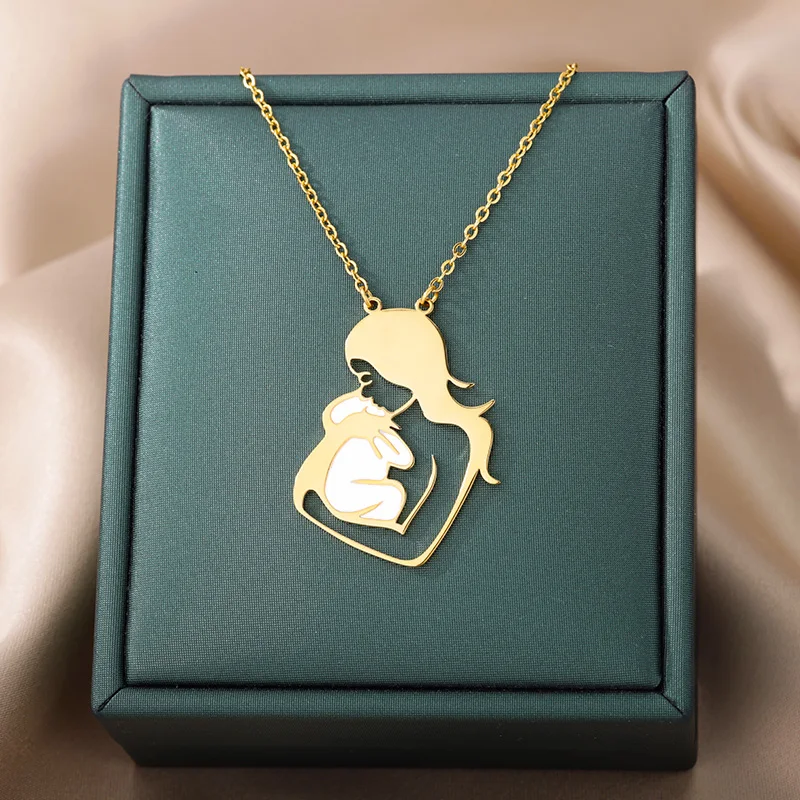 Holding Baby In Arms Necklaces For Women Mom Gold Color Neck Chain Stainless Steel Necklace Pendant Female Jewelry Birthday Gift