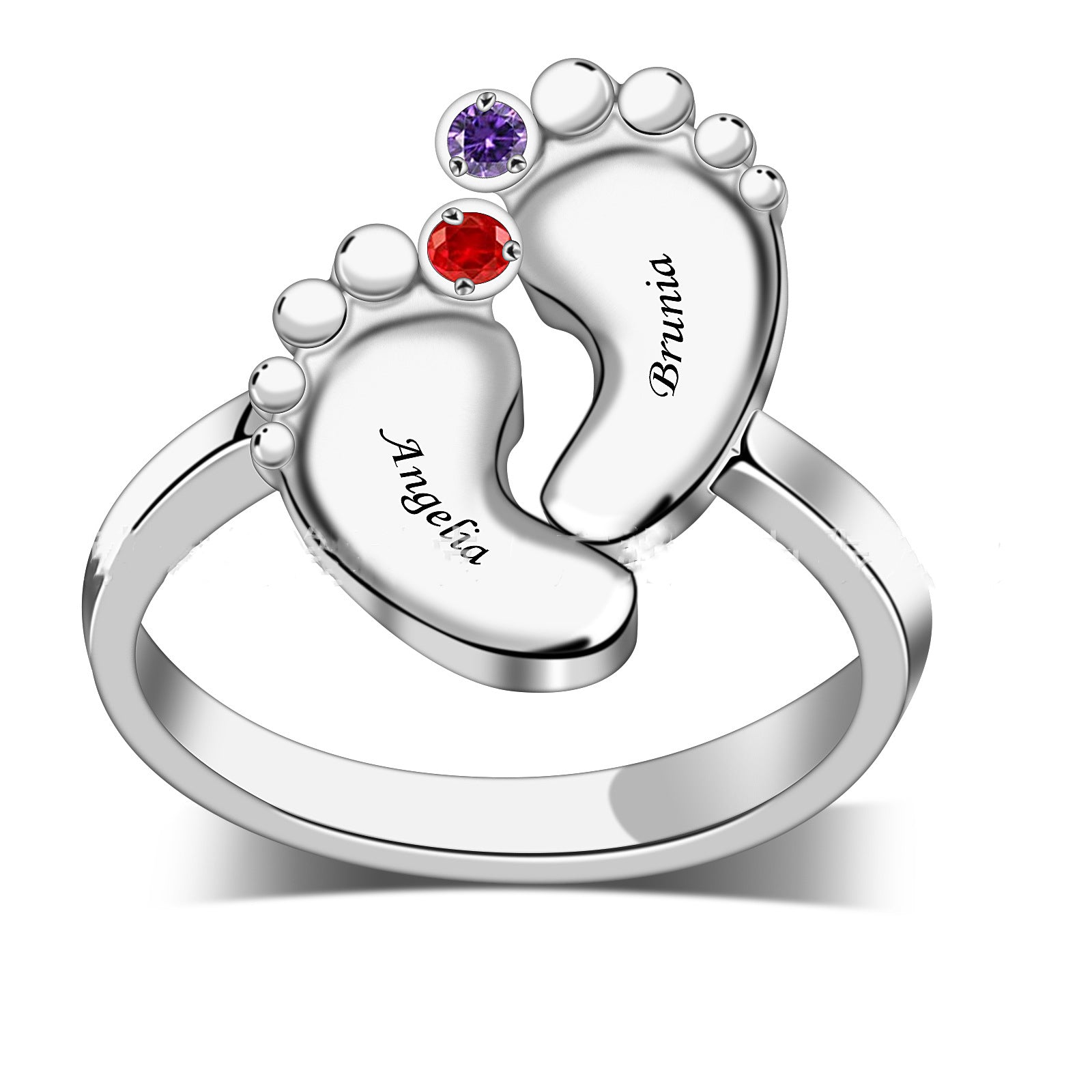 Personalized jewelry s925 cross-border wholesale baby footprint ring Birthstone ring footprint engraved hand jewelry
