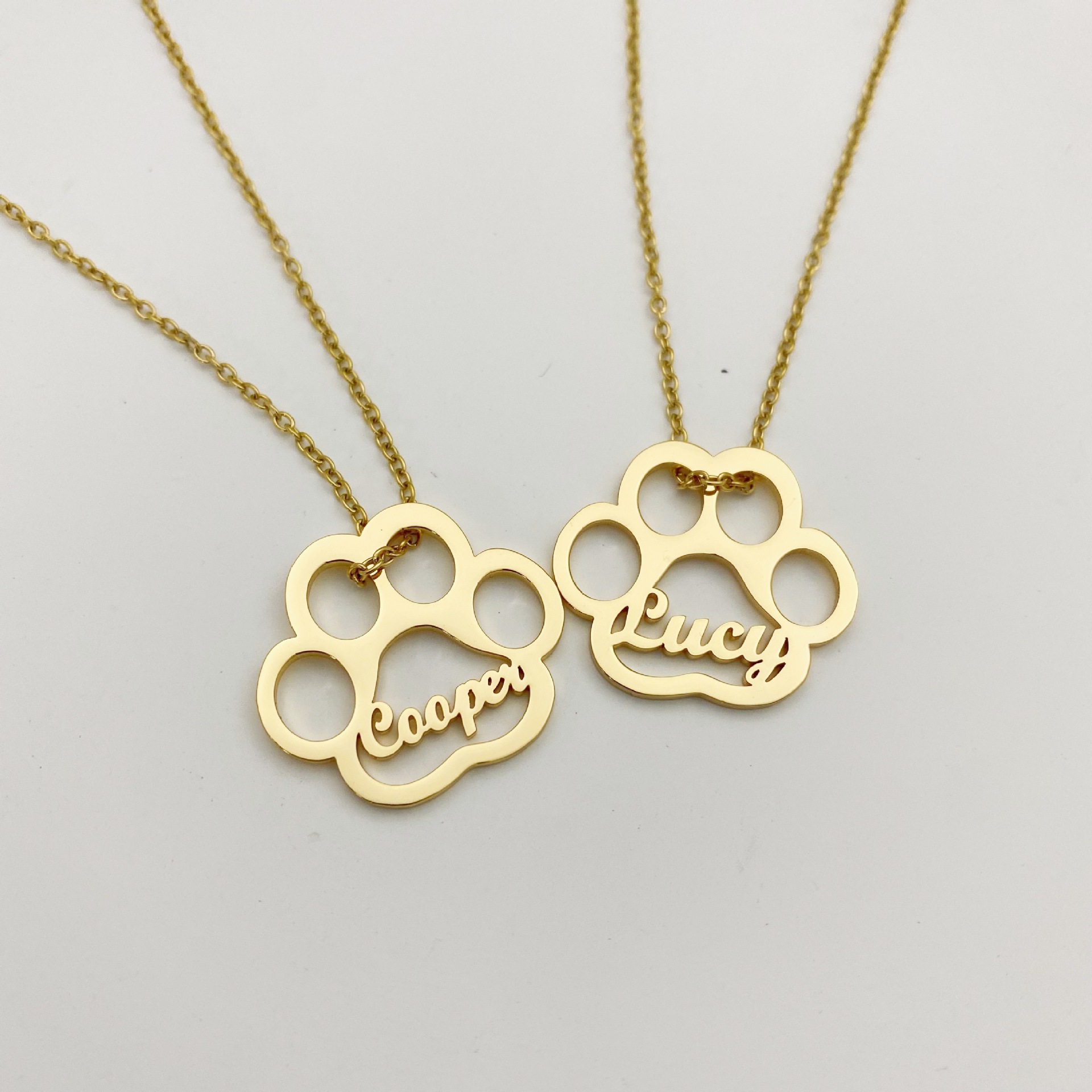 Personalized Name Necklace Dog Paw Necklace Personalized Dog Necklace Paw Print Initial Bone Pet