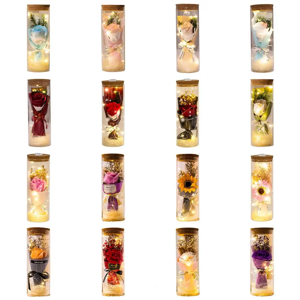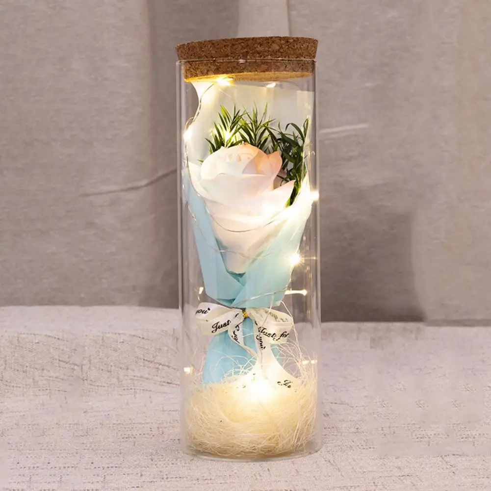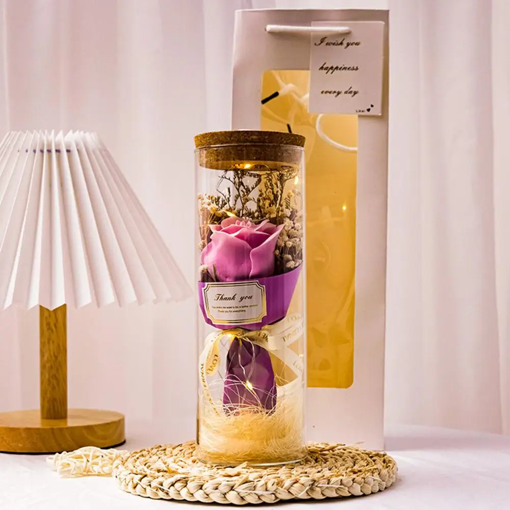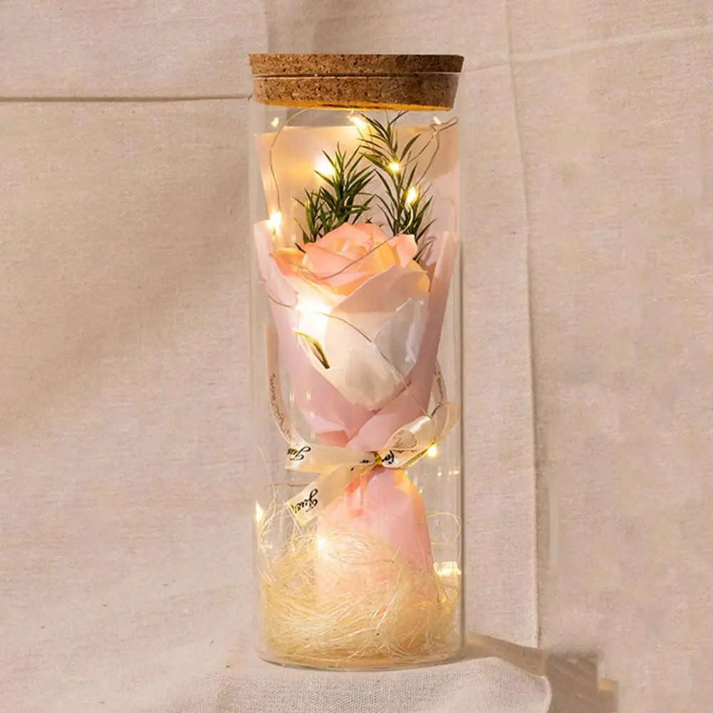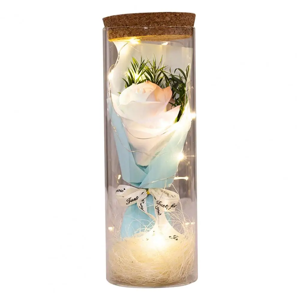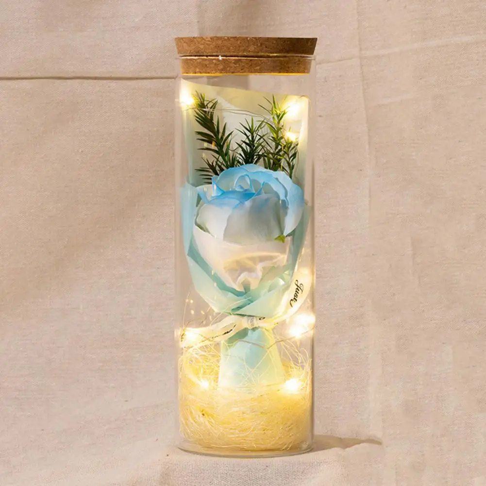 Preserved Flower Glass Wishing Bottle Eternal Rose Flower with LED Light Romantic Gift Soap Rose Flower for Lover Friends