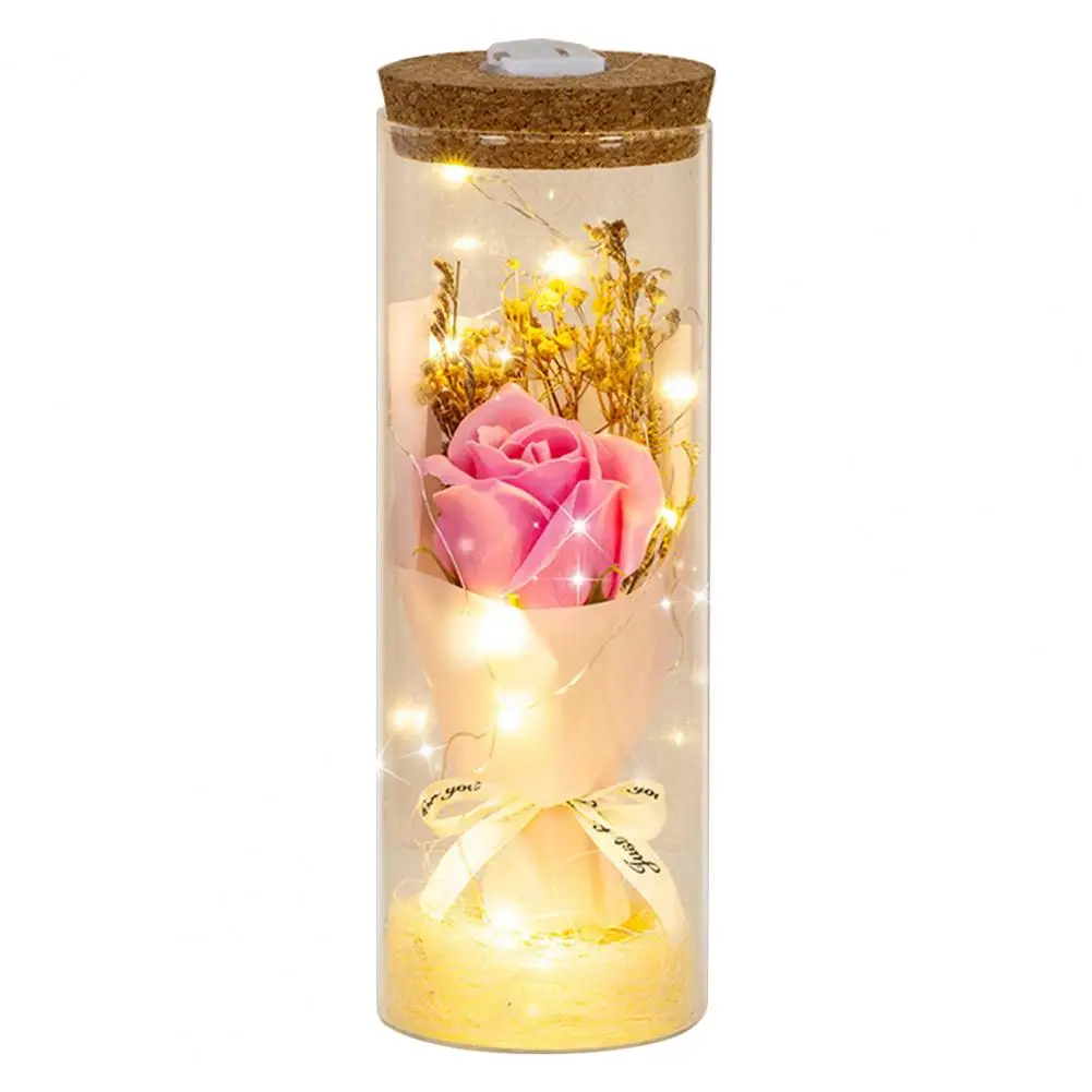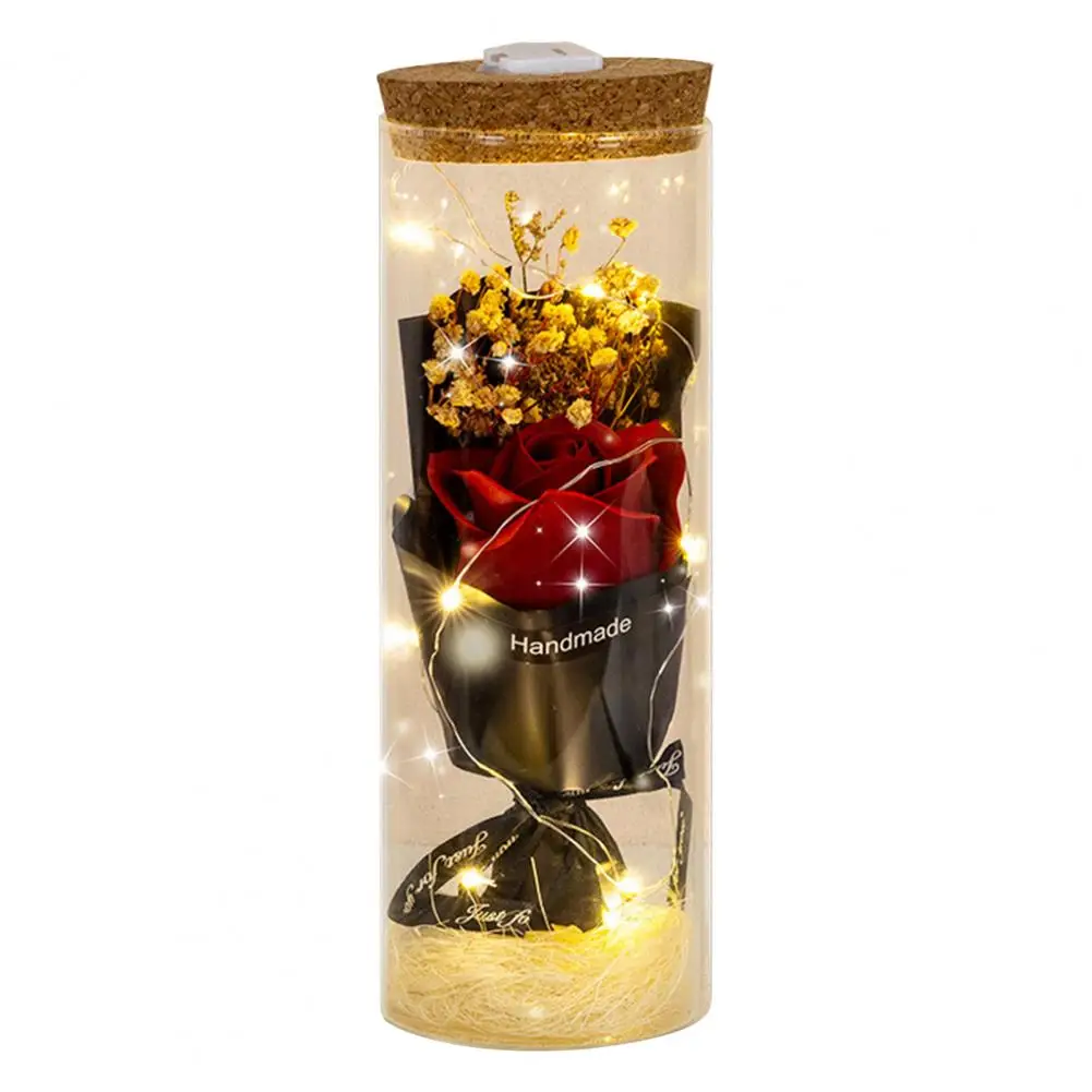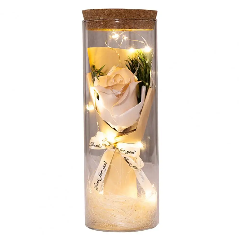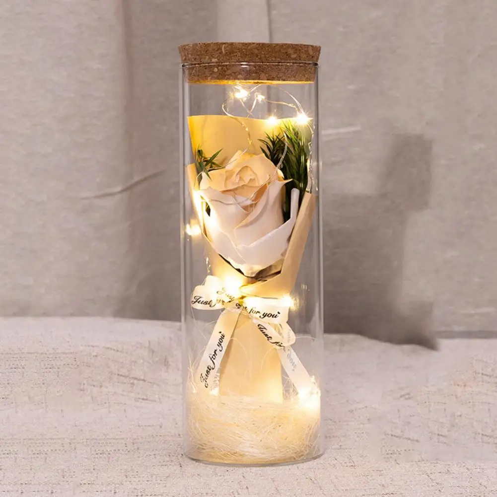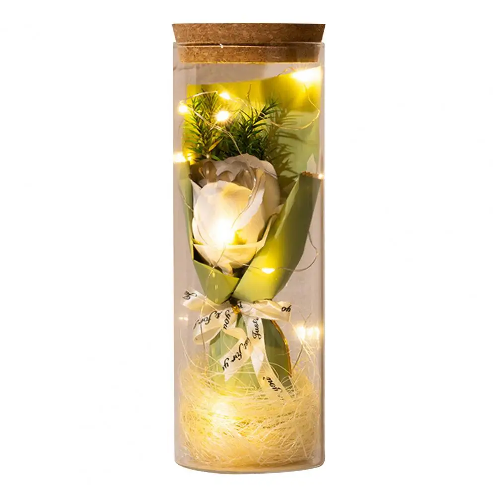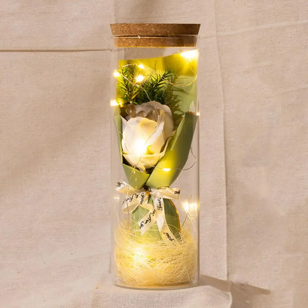 Preserved Flower Glass Wishing Bottle Eternal Rose Flower with LED Light Romantic Gift Soap Rose Flower for Lover Friends
