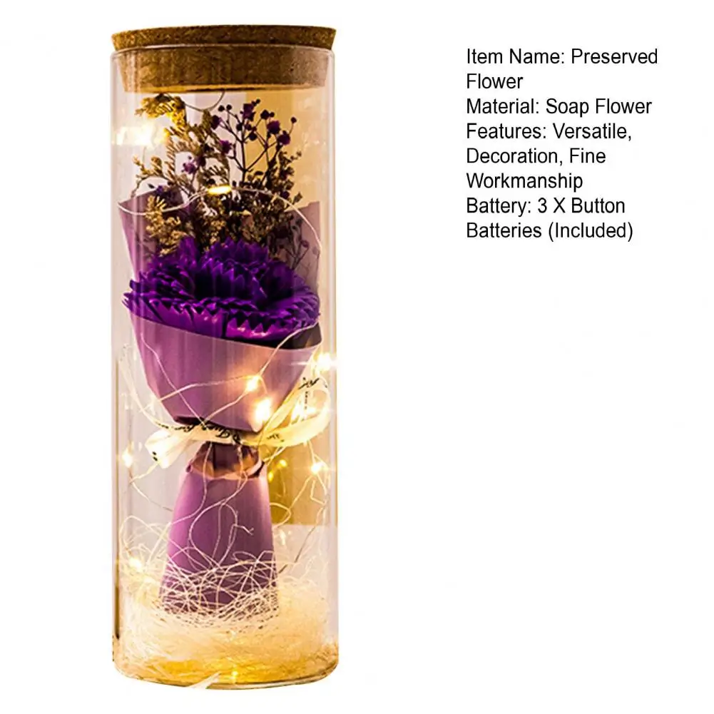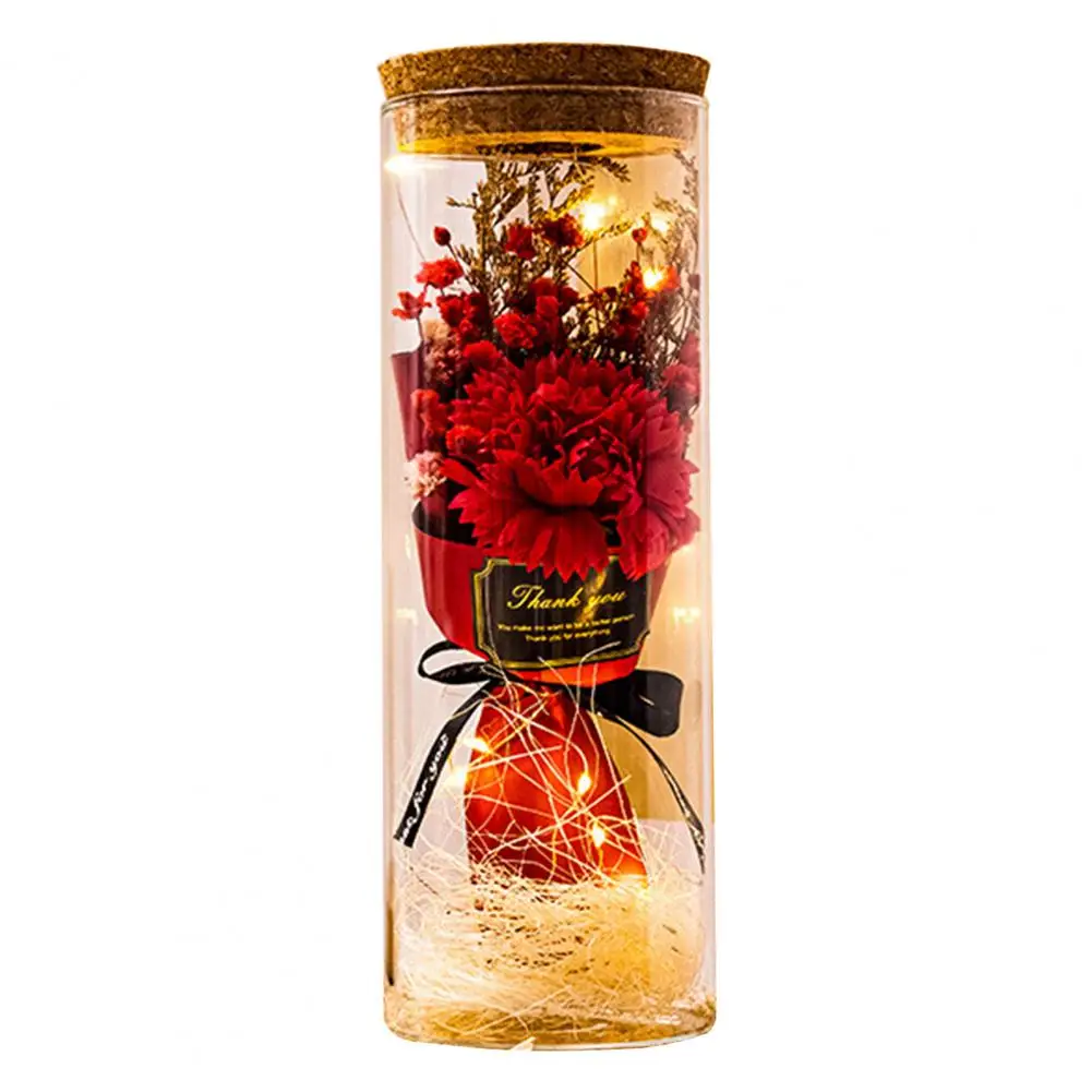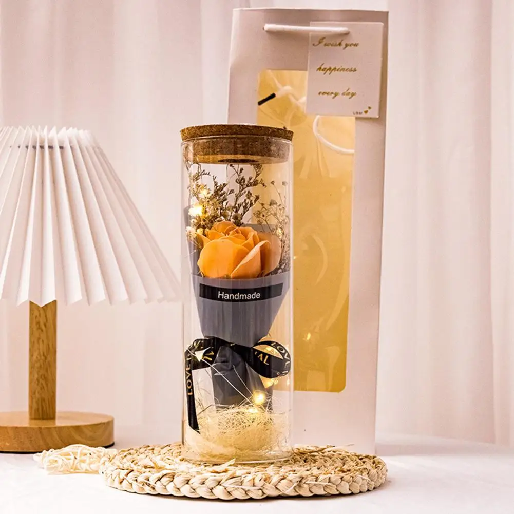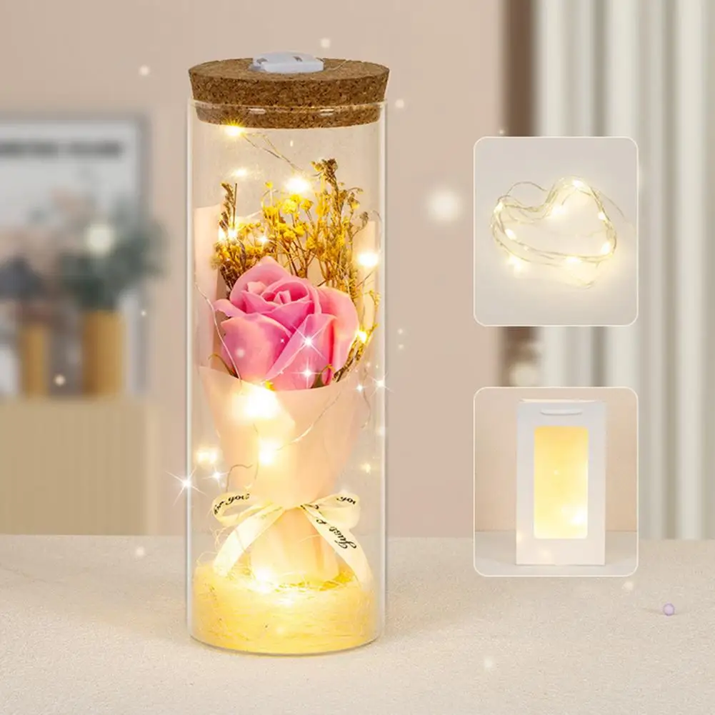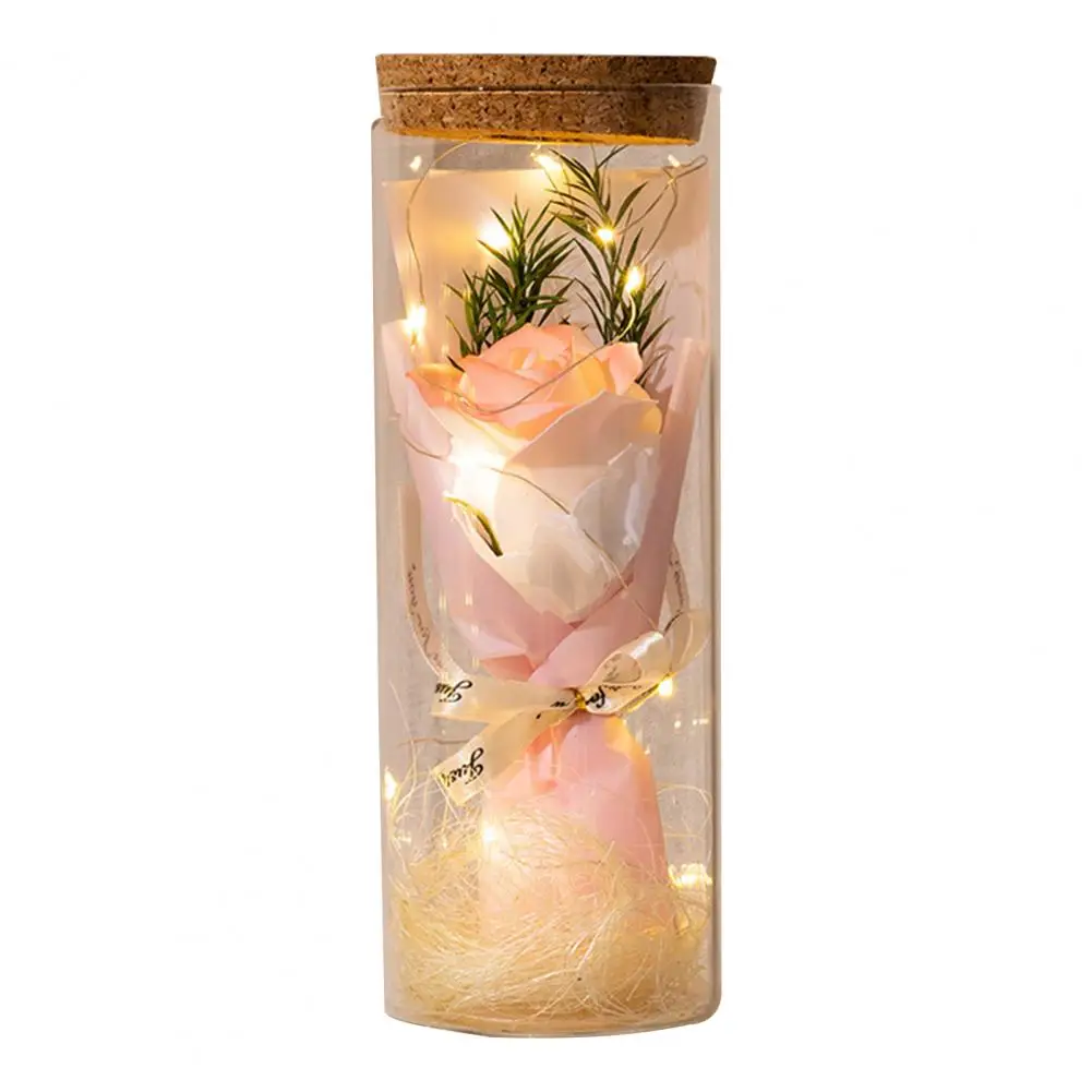 Preserved Flower Glass Wishing Bottle Eternal Rose Flower with LED Light Romantic Gift Soap Rose Flower for Lover Friends