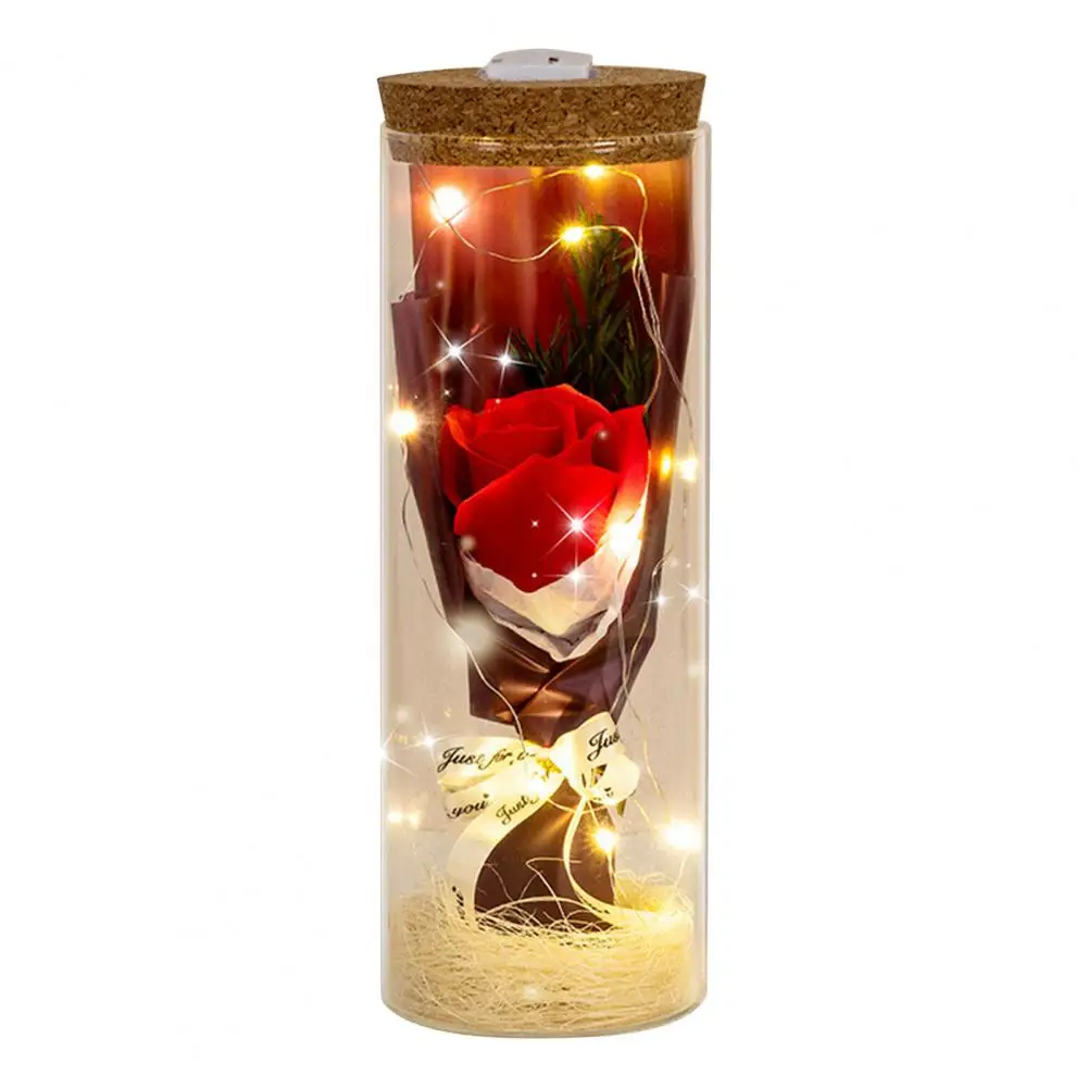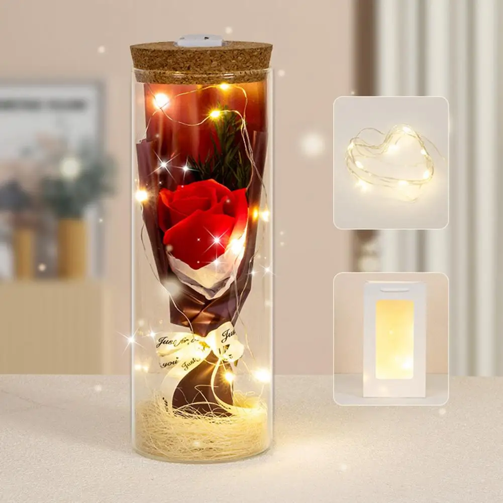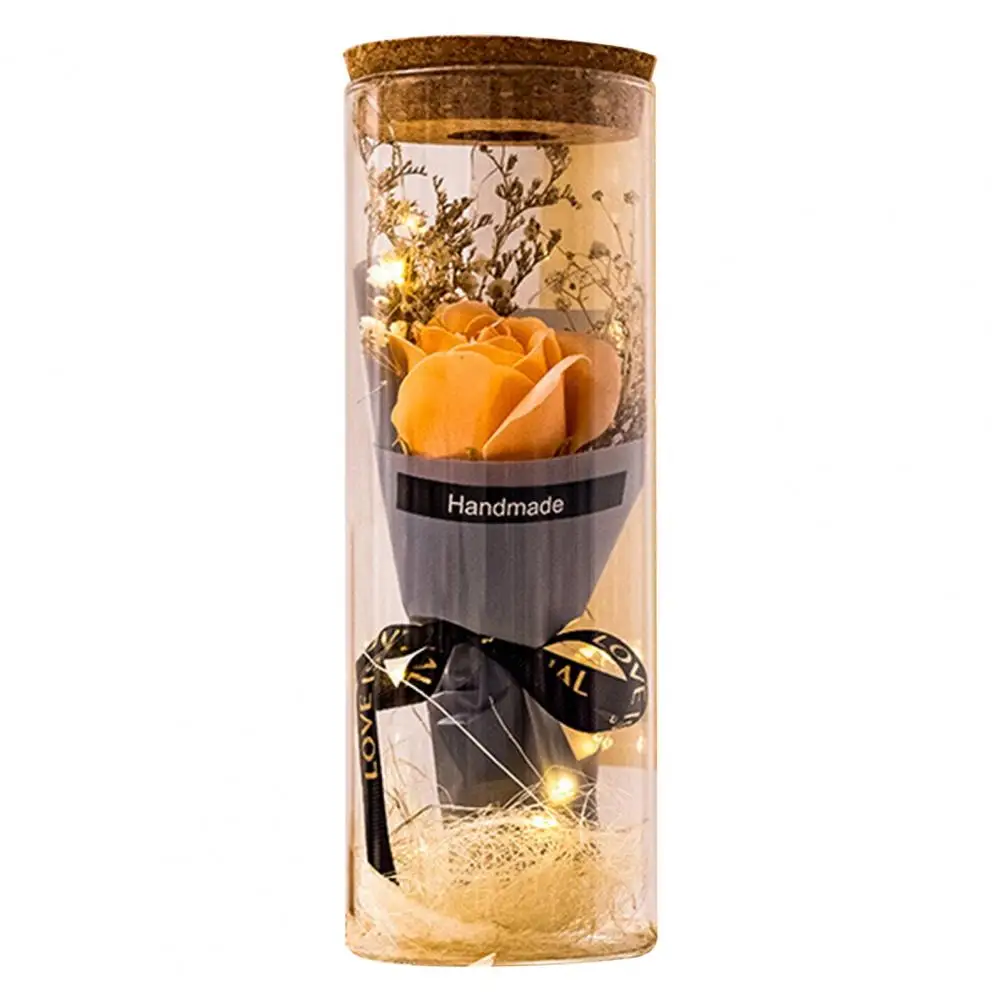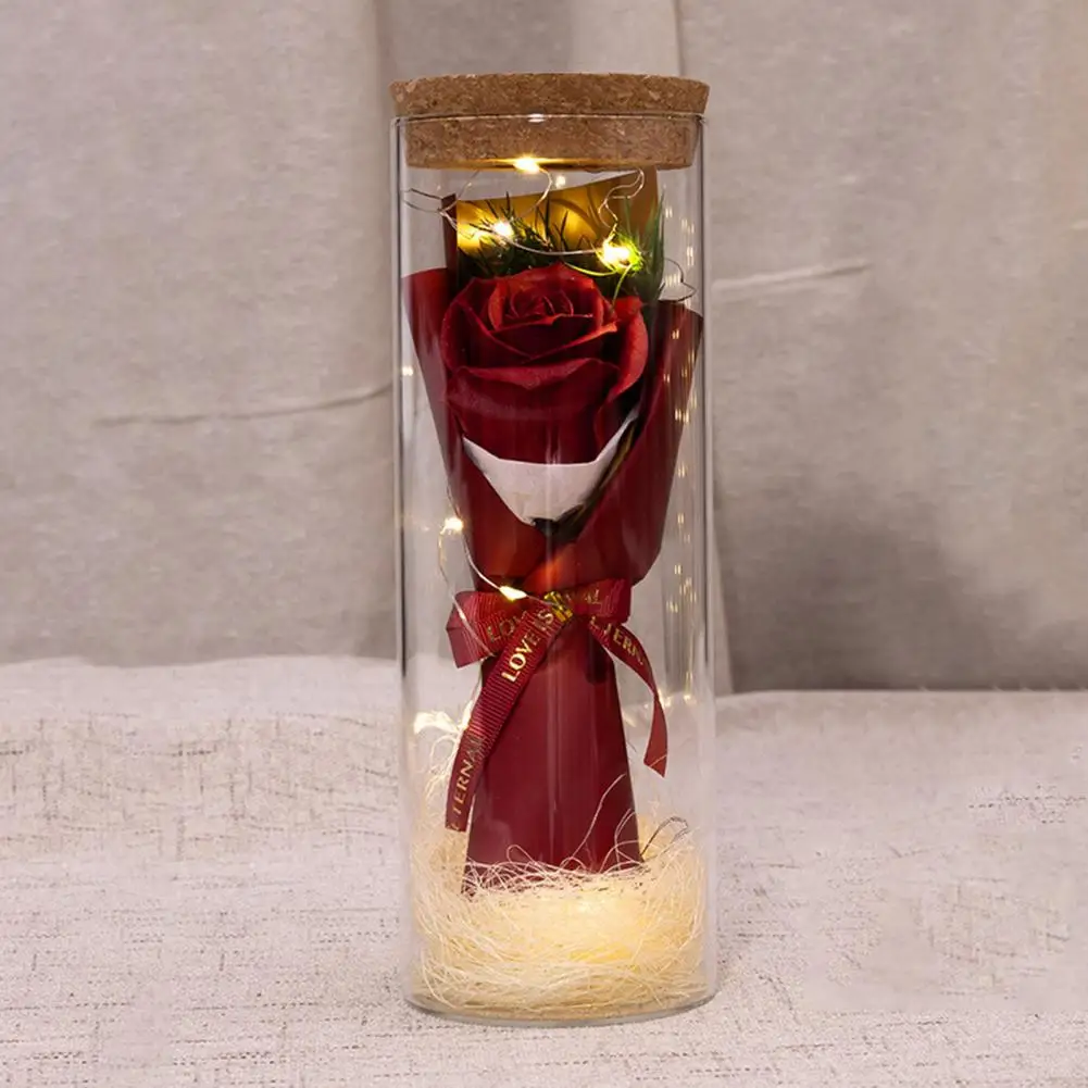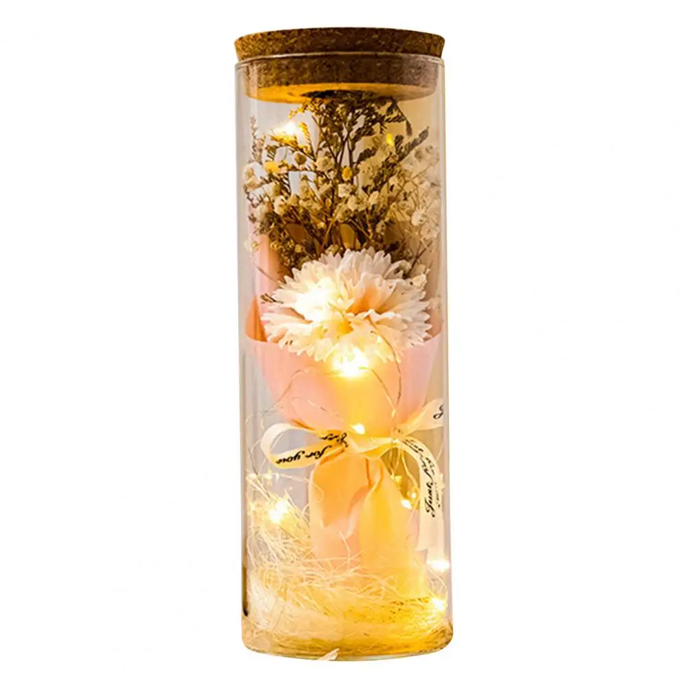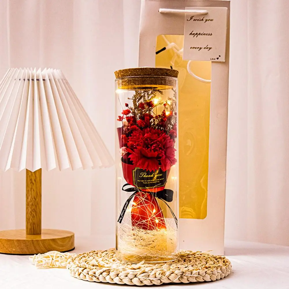Preserved Flower Glass Wishing Bottle Eternal Rose Flower with LED Light Romantic Gift Soap Rose Flower for Lover Friends