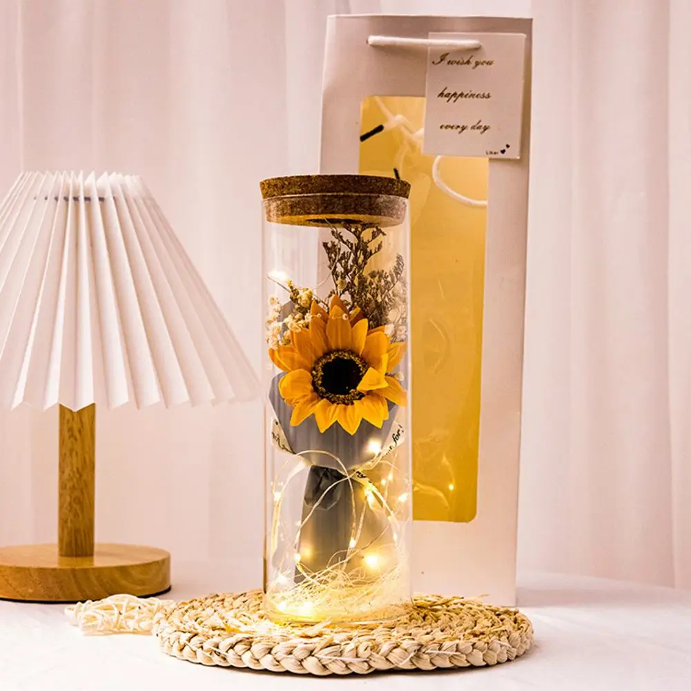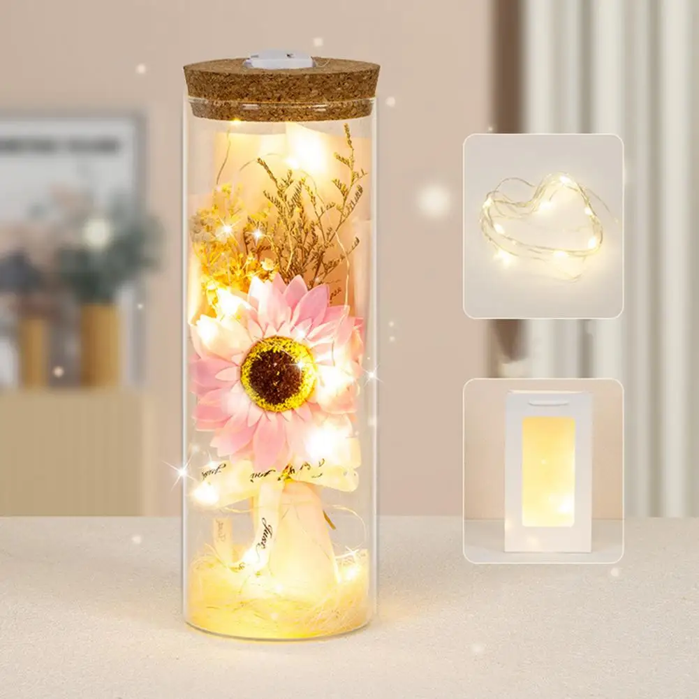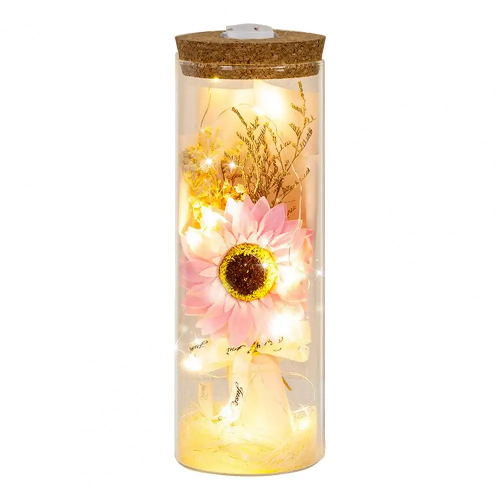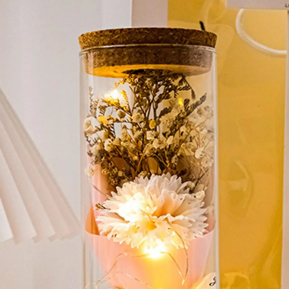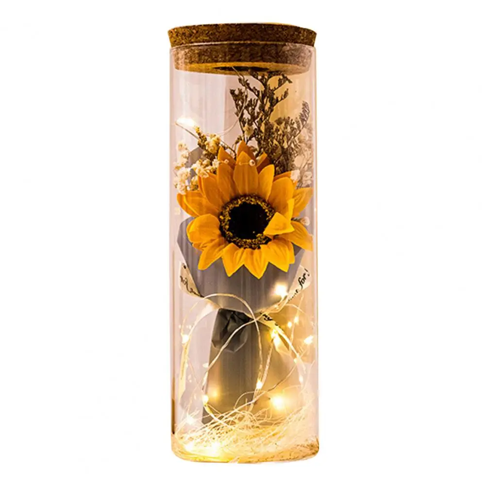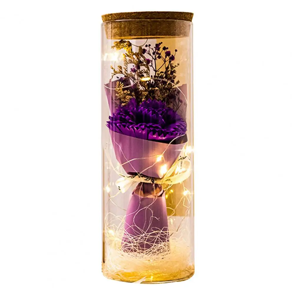 Preserved Flower Glass Wishing Bottle Eternal Rose Flower with LED Light Romantic Gift Soap Rose Flower for Lover Friends
