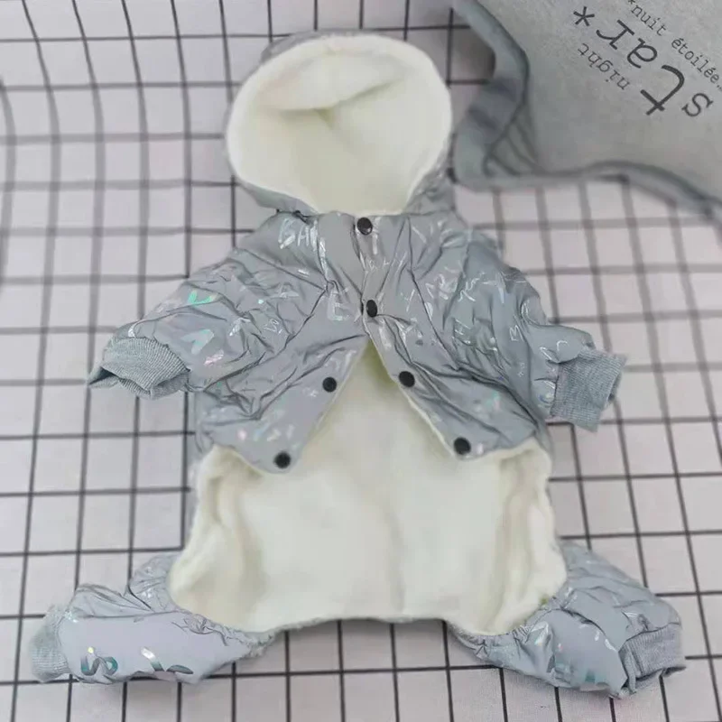 Reflective Clothing for Pets Warm Letter Printing Silve Color Four-legged Pet Waterproof Small and Medium Dog Winter Jumpsuits