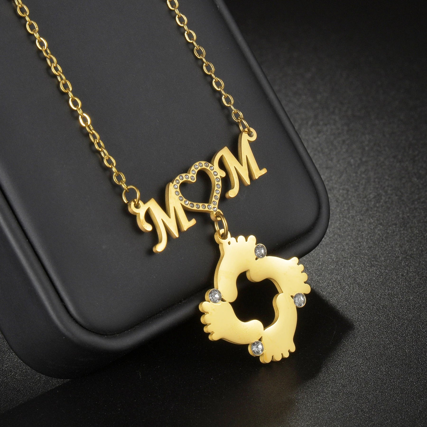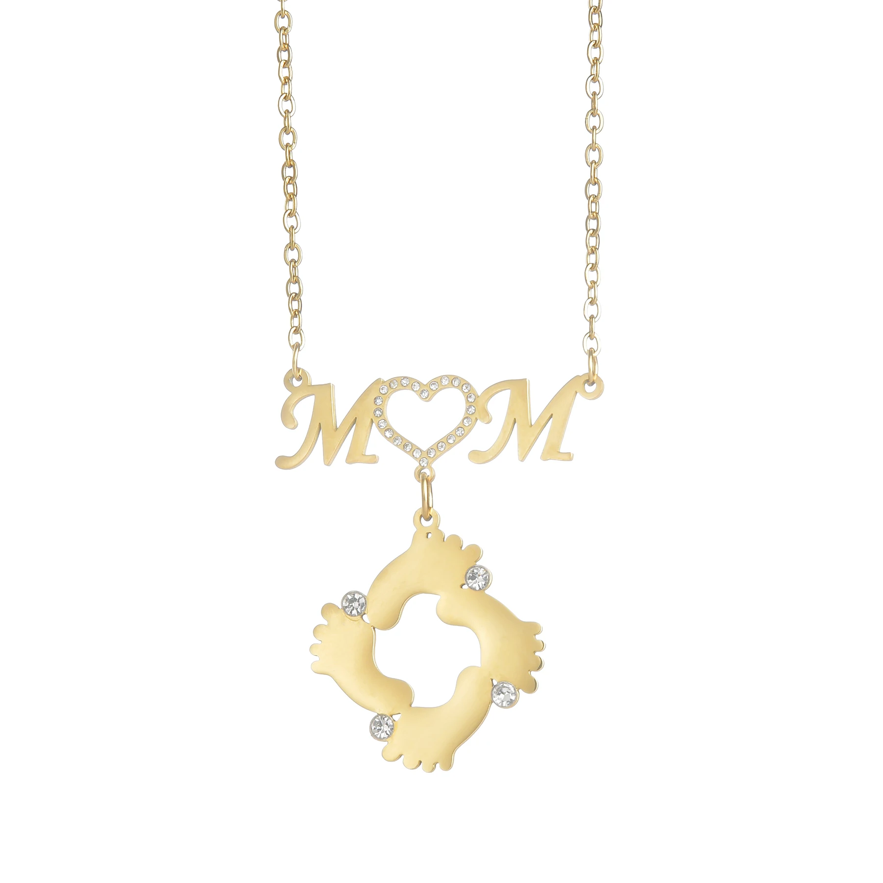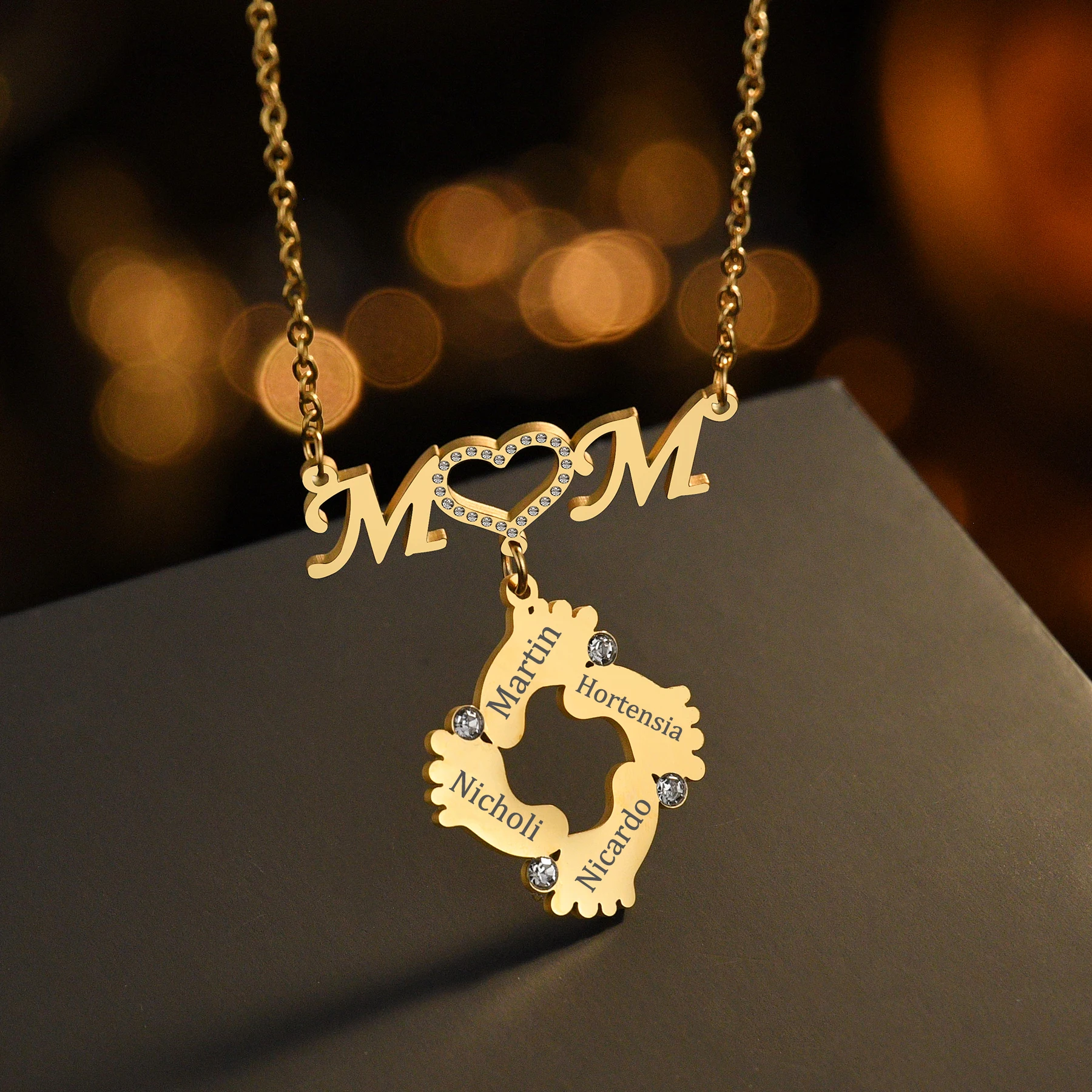 Sifisrri Personalized Custom Name Necklace for Women Zircon Mom Heart Family Pandent Stainless Steel Mother Kids Jewelry Gift