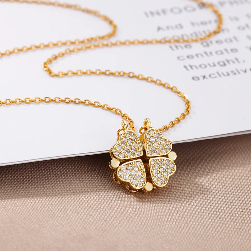 Stainless Steel Heart Necklaces for Women Vintage Four Leaf Clover Pendants Choker Necklace Goth Fashion Neck Chain Jewelry Gift
