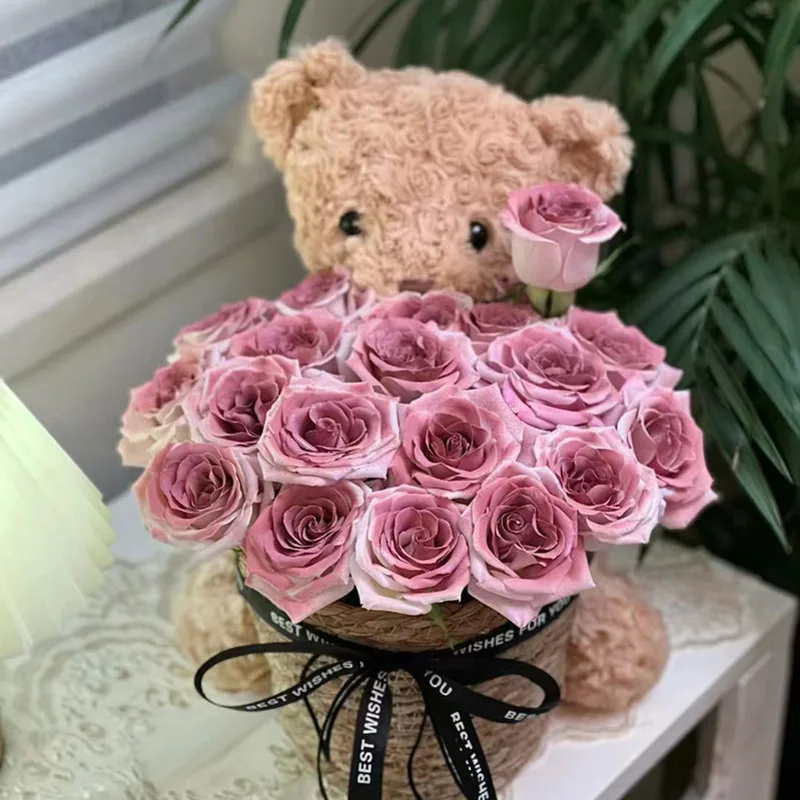 2. The number of flowers in the picture is for reference only and will be shipped according to the actual quantity marked on the SKU (11pcs refers to 11 flowers, 40cm refers to the height of the bear)