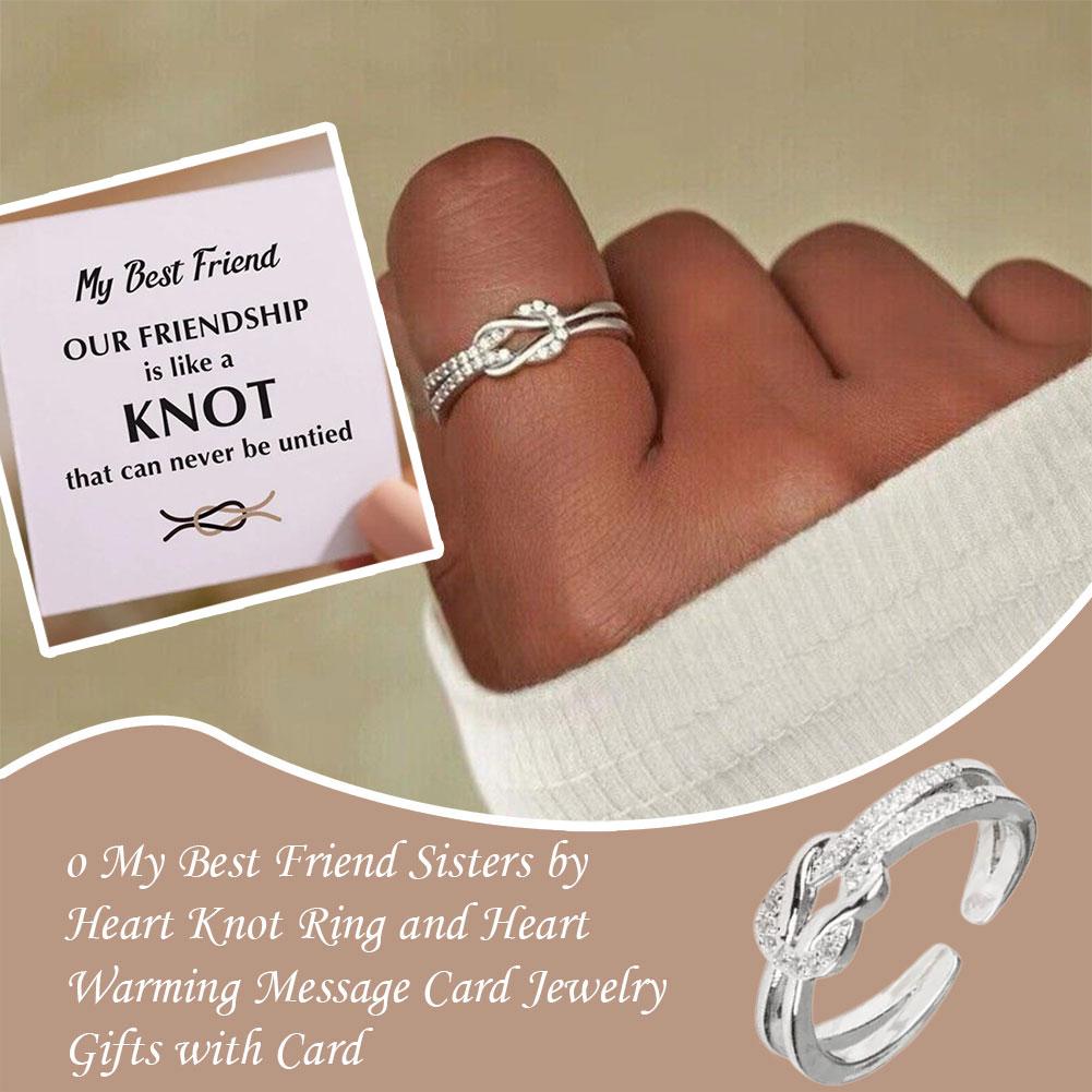 To My Best Friend 'Sisters By Heart' Knot And Heart Warming Message Card Adjustable Open For Women Girls Birthday Gift